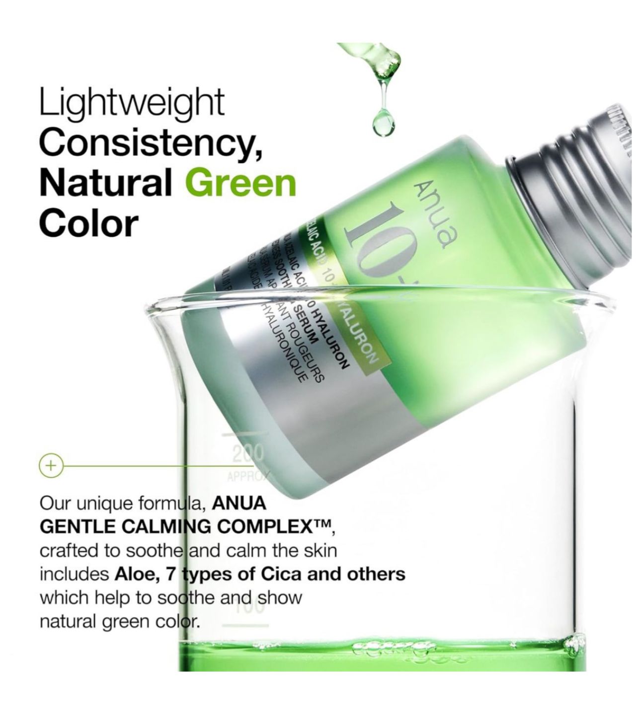 Get the smooth, glowing skin you've always wanted with Anua Azeliac Acid 10 Hyaluronic Redness Soothing Serum. Its lightweight consistency and natural green color make it perfect for all skin types, and its gentle formula helps soothe redness and inflammation for a revitalized complexion.